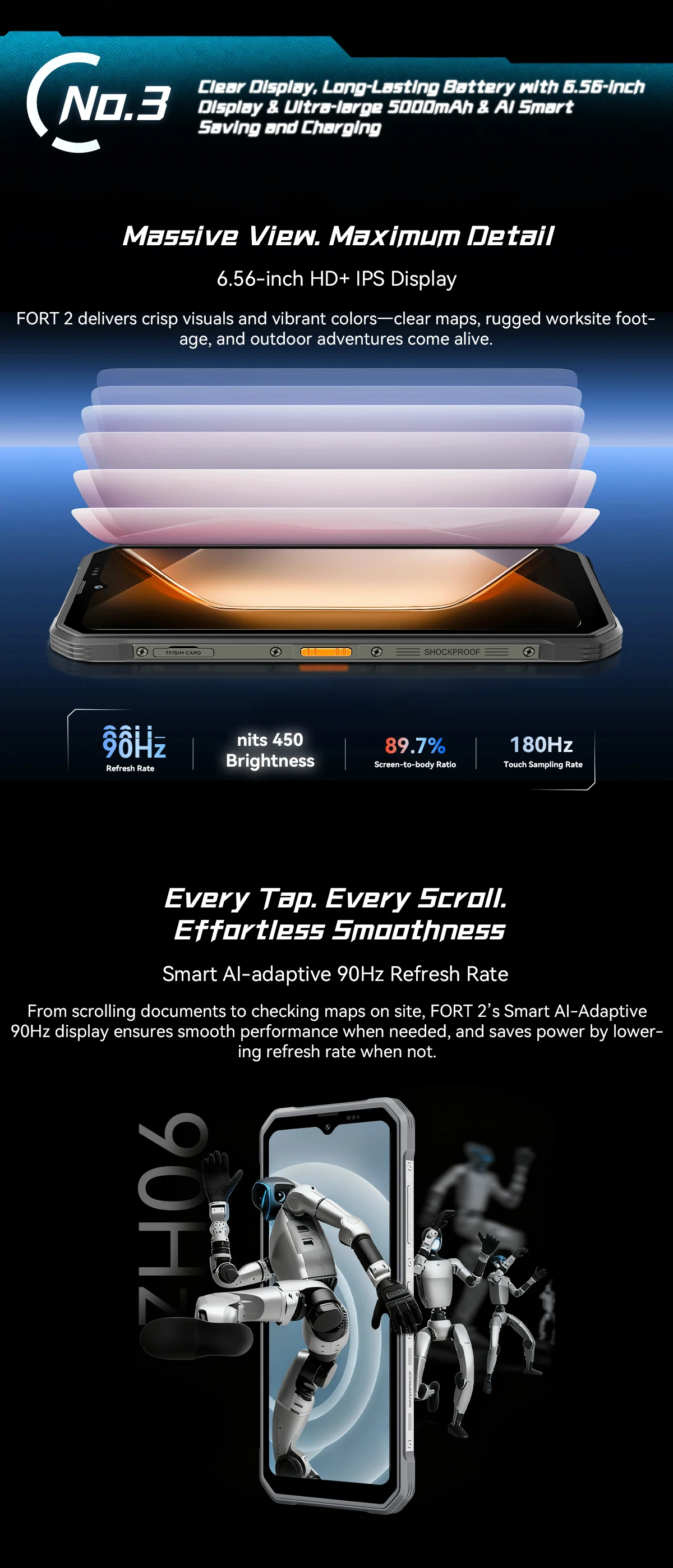 Điện thoại Blackview FORT 2 Rugged 6.65 inch Android 15 AI Điện thoại thông minh RAM 8GB Bộ nhớ trong 128GB/256GB MT6769V 5000mAh