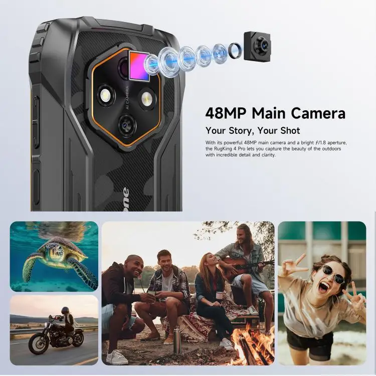 Điện thoại Ulefone RugKing 4G Rugged, Điện thoại thông minh Android 15 đã mở khóa, 16 + 256 GB, Camera 50 MP + 2 MP + 8 MP, 9600 mAh, Loa 126 dB, Màn hình 5,99 inch, Khe cắm 3 thẻ, Sạc NFC/GPS/uSmart/Dock, Di động LTE kép