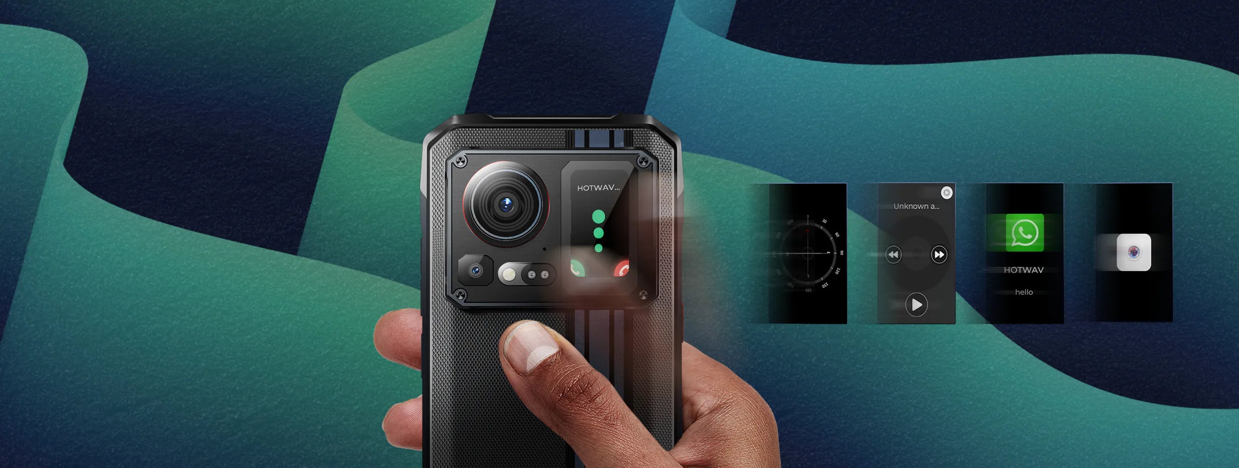 HOTWAV once again launches a product with dual touch screens. This stylish secondary touch screen offers practical features such as time viewing, camera and music app controls, and notifications for calls and messages, including popular apps like WhatsApp and Telegram. It also displays battery status and step count. All of these ensure a smarter, more efficient user experience.