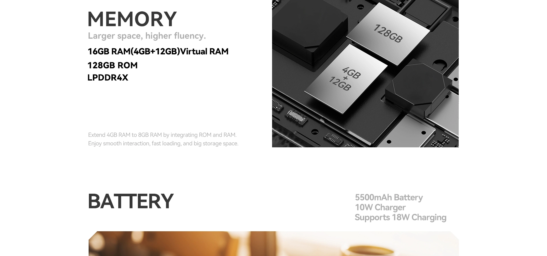 - RAM 16GB (4GB + 12GB)