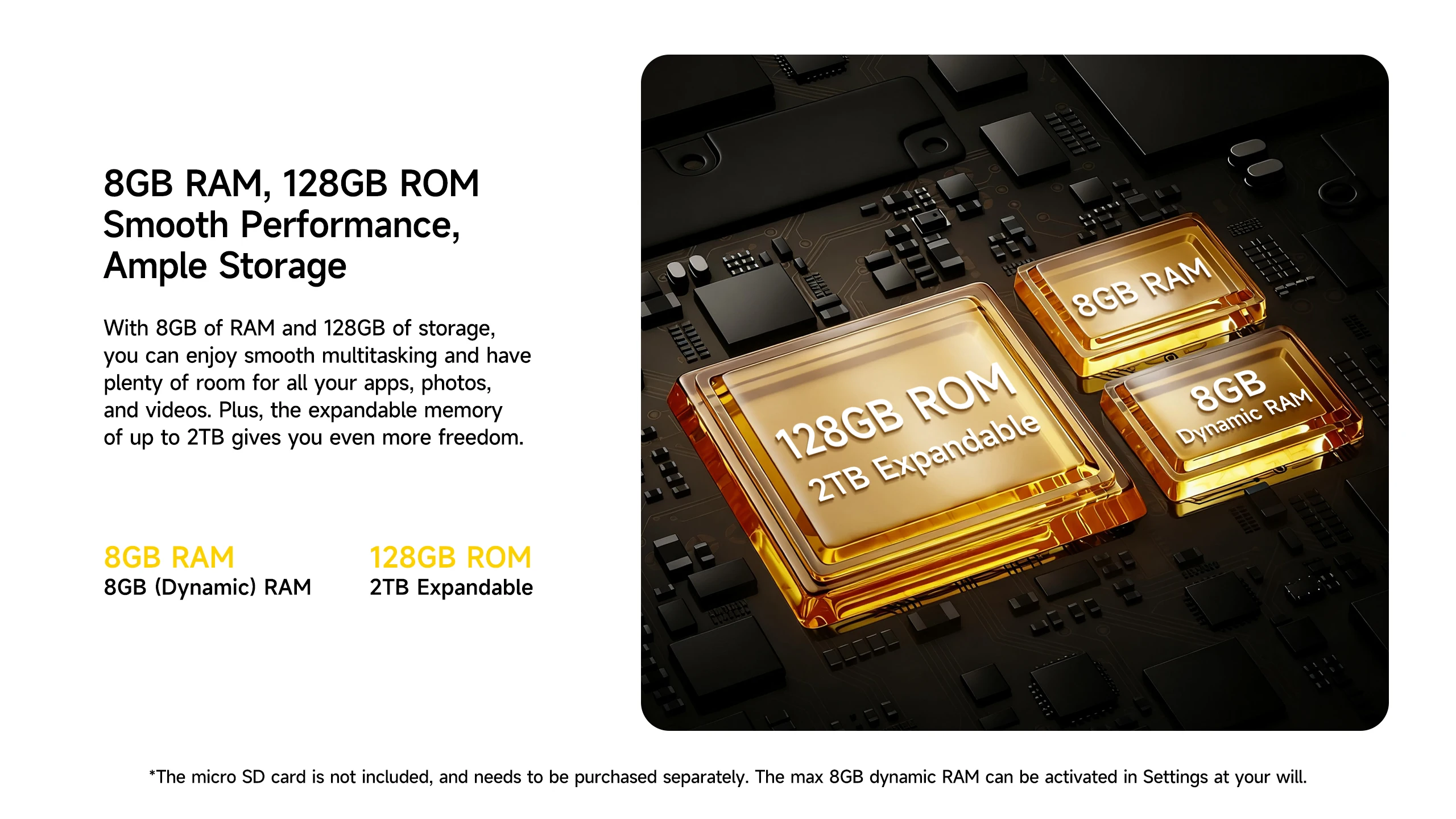 - Mở rộng lưu trữ: Thẻ TF lên đến 2TB (không bao gồm)